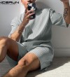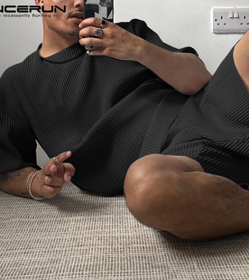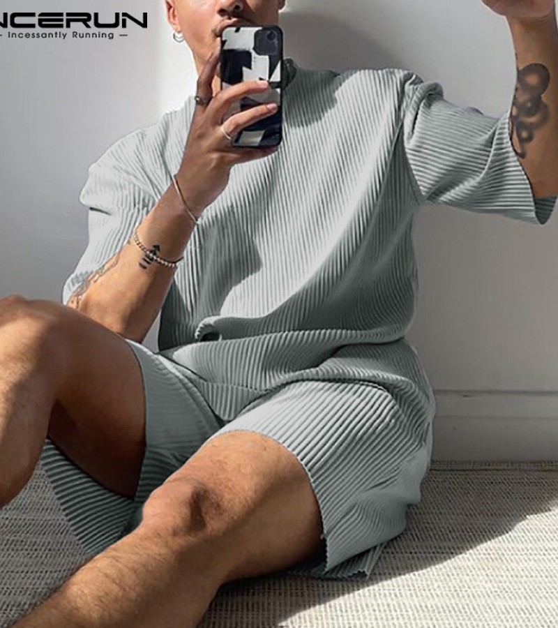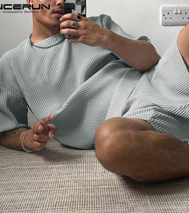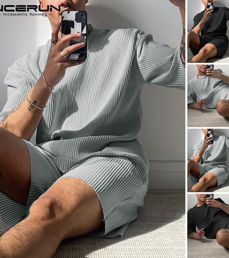 INCERUN Mens Shorty Tracksuit Short Sleeve T Shirt & Shorts Loungwear Gym Sport Sets Suit (Western Style)