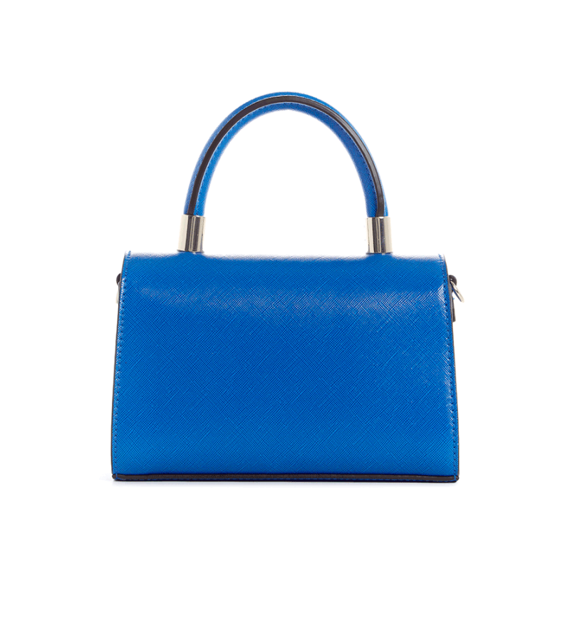 Pack a punch in this cute mini top handle bag with adjustable and removable long shoulder strap and silver hardware