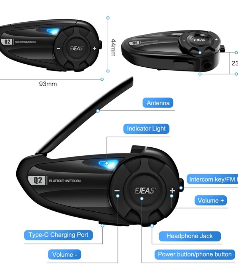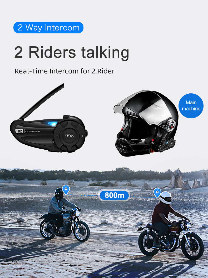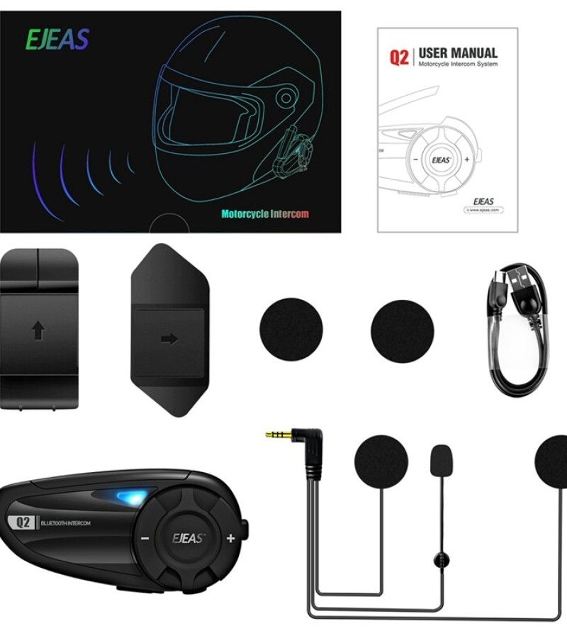 EJEAS Q2摩托车头盔蓝牙对讲耳机,2人实时通话,蓝牙5.1防水1件套