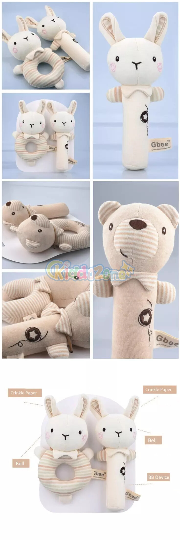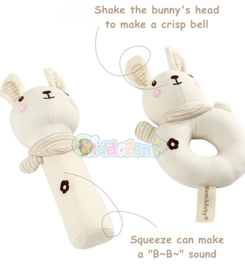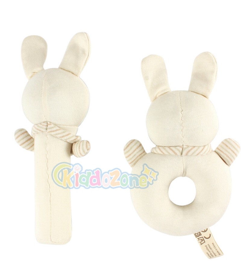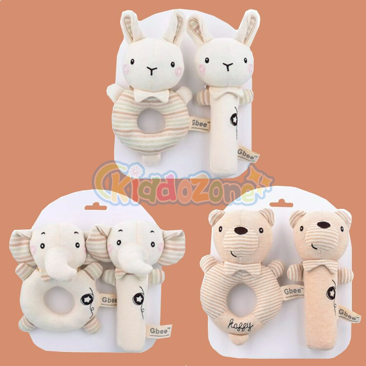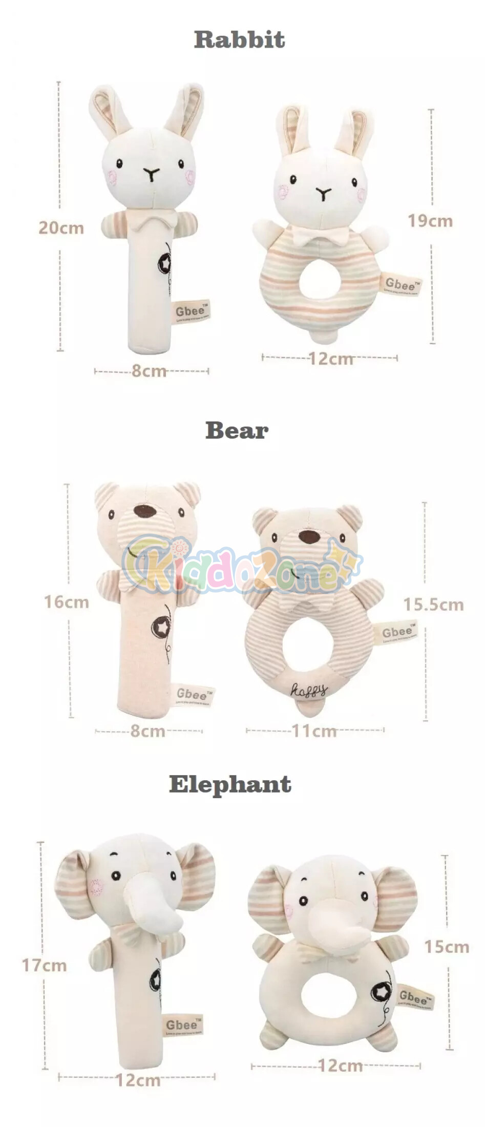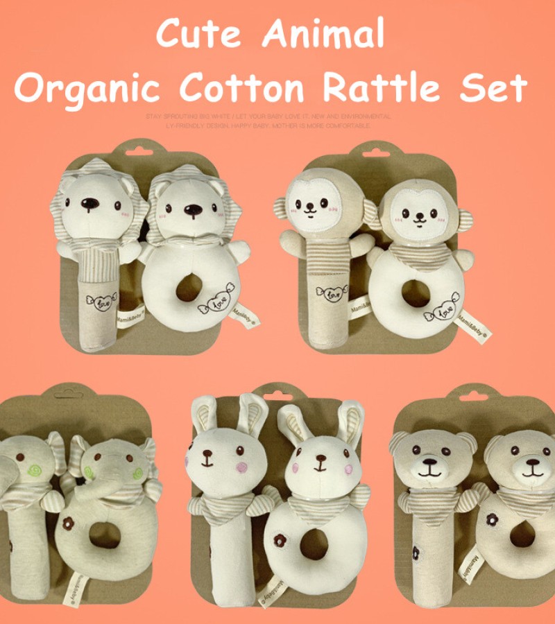 KiddoZone 2PCS Baby Rattle Kids Organic Cotton Soft Extrusion Rattle Cute Animal Appease Hand Rattle Plush Hand Holding Bell Toy BB Sound Educational Toys for 0-3 Year Boy Girls Baby