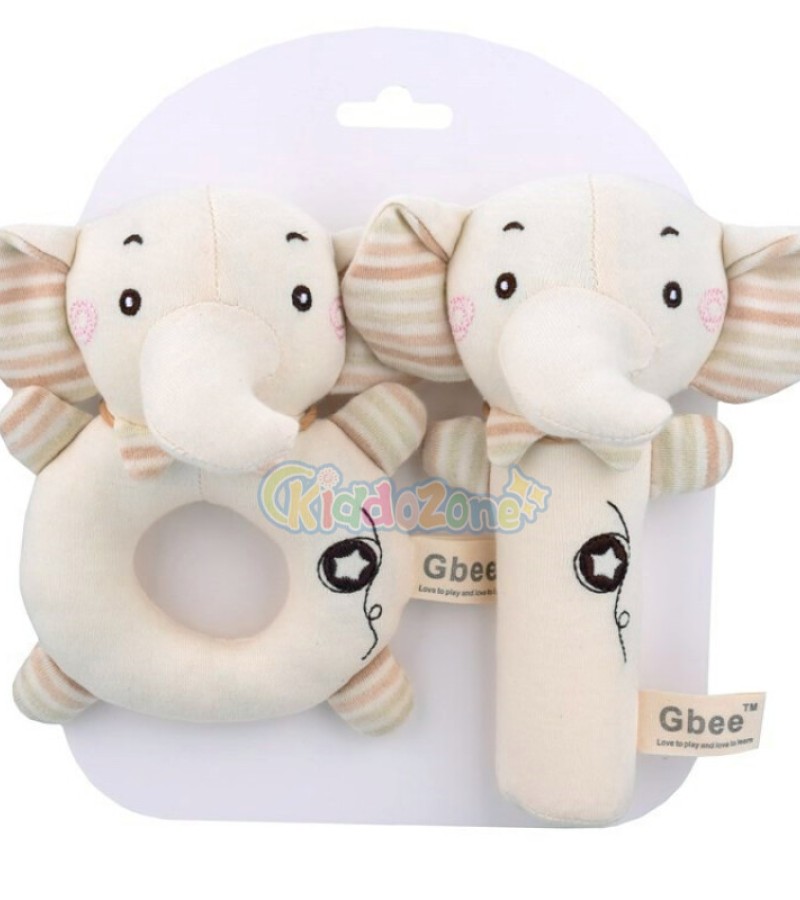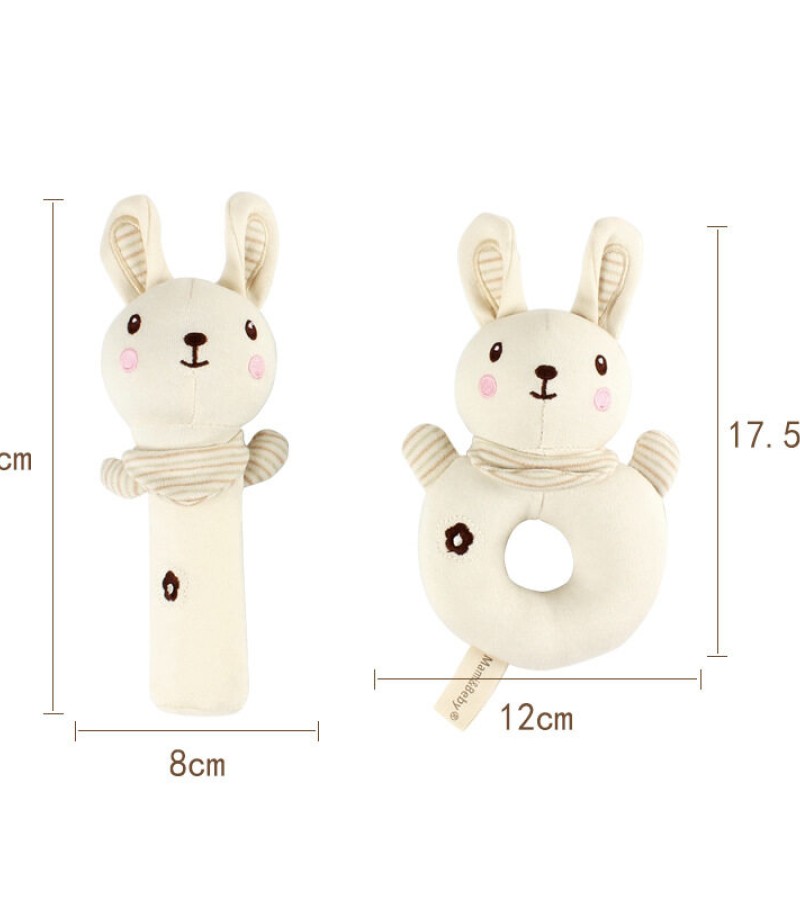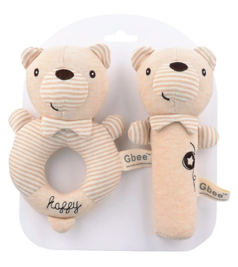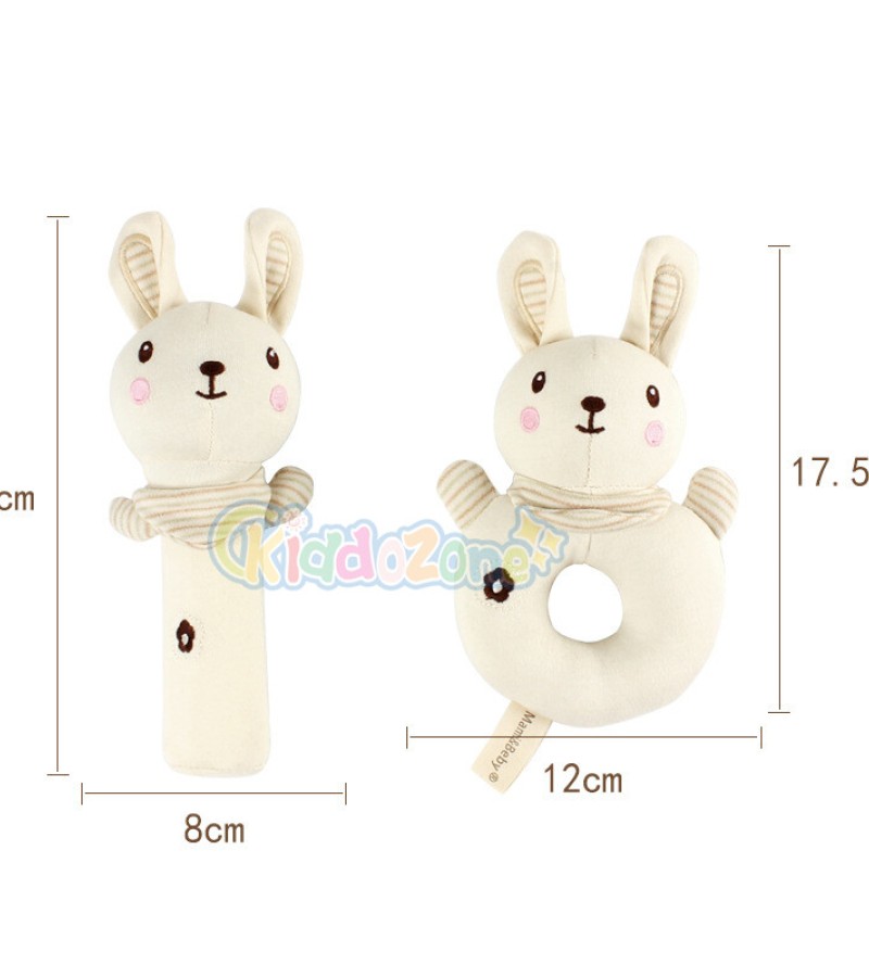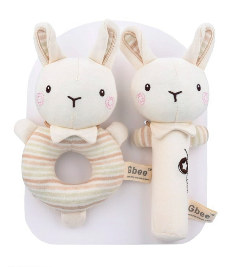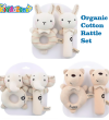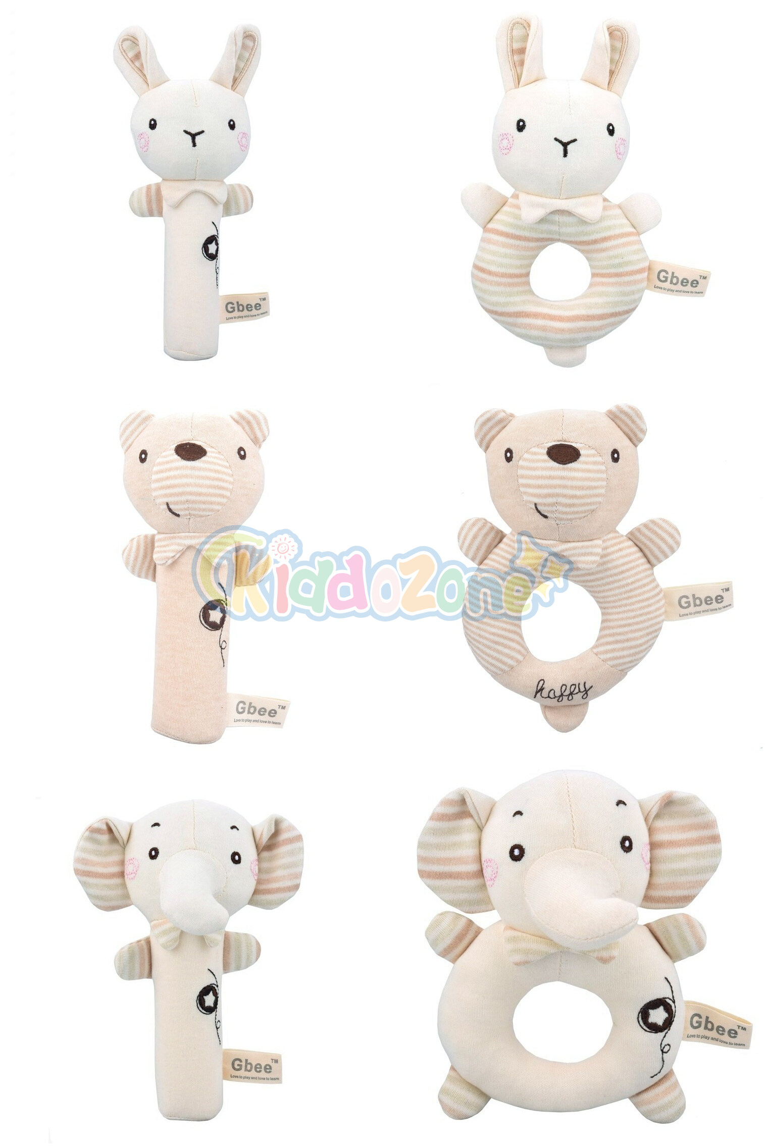 KiddoZone 2PCS Baby Rattle Kids Organic Cotton Soft Extrusion Rattle Cute Animal Appease Hand Rattle Plush Hand Holding Bell Toy BB Sound Educational Toys for 0-3 Year Boy Girls Baby