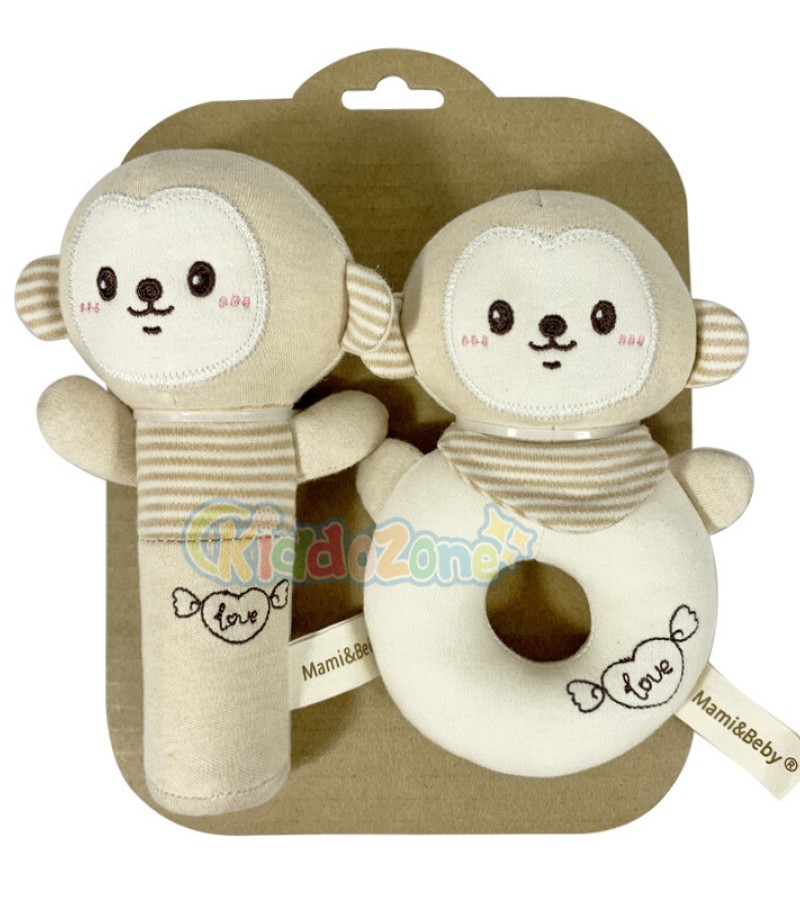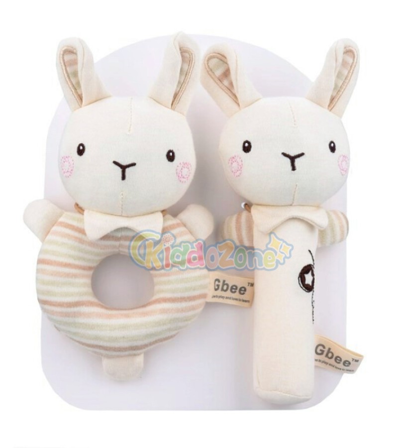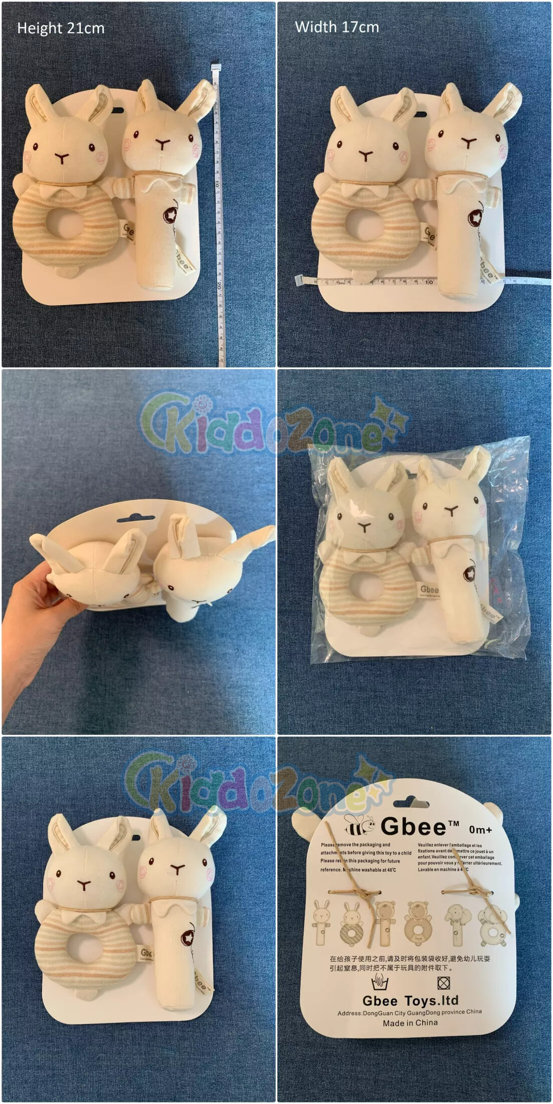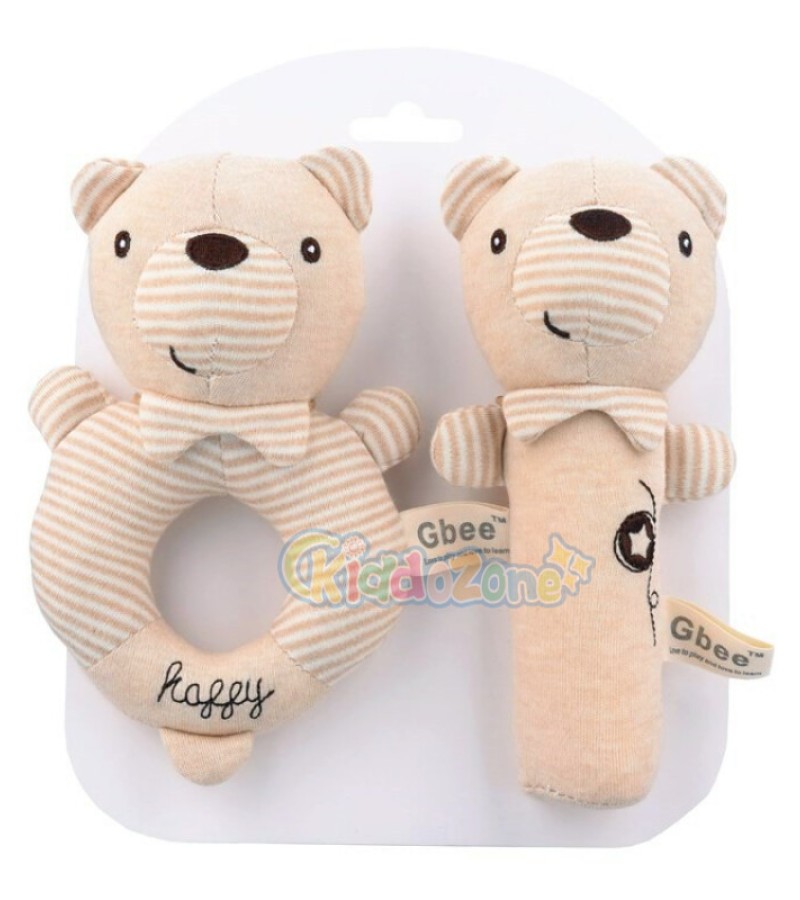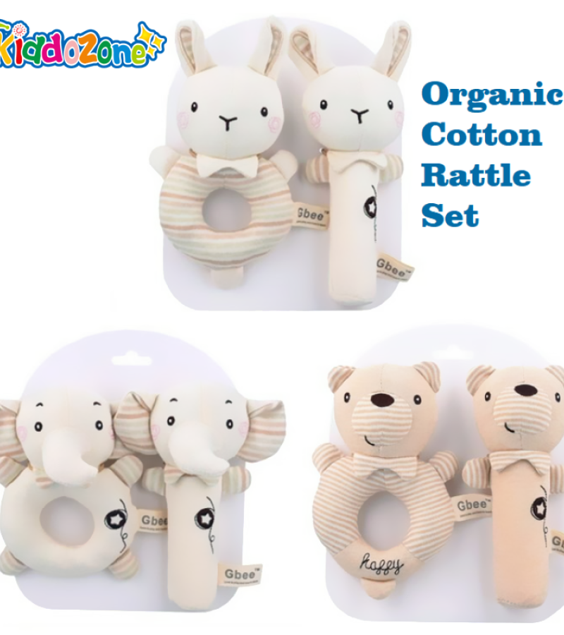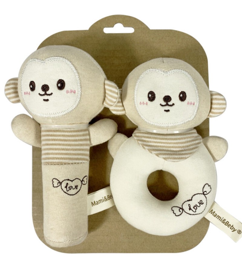 KiddoZone 2PCS Baby Rattle Kids Organic Cotton Soft Extrusion Rattle Cute Animal Appease Hand Rattle Plush Hand Holding Bell Toy BB Sound Educational Toys for 0-3 Year Boy Girls Baby