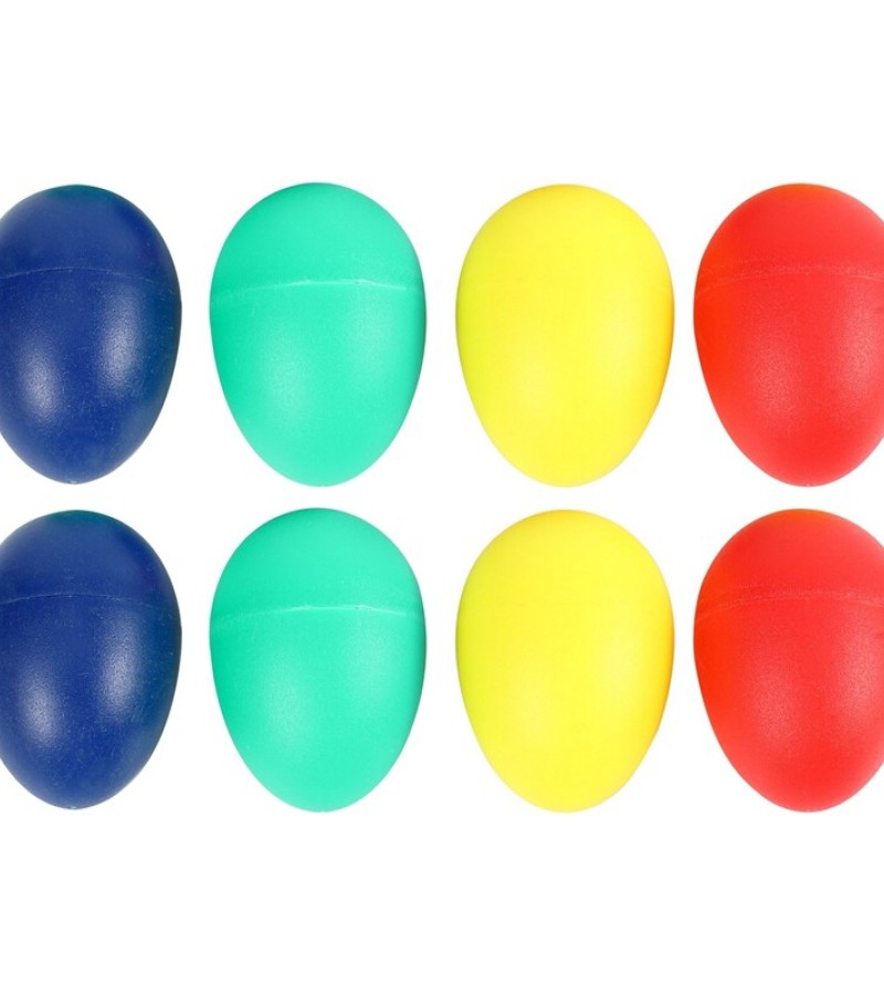 Set of 8 music egg shakers, Assorted colors: Green x 2, Yellow x 2, Blue x 2, Red x 2