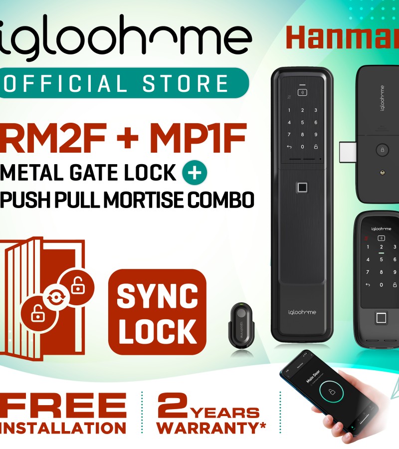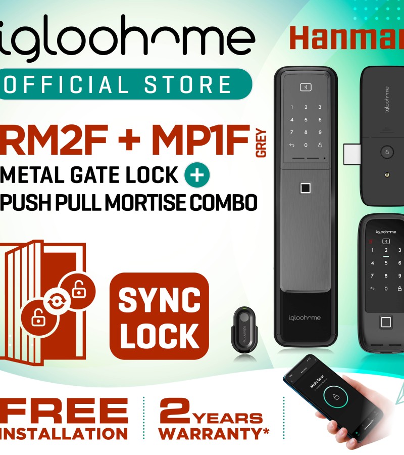 MP1F - IGLOOHOME (PUSH PULL MAIN DOOR LOCK) + RM2F - IGLOOHOME (METAL GATE LOCK) COMBO (SYNC LOCK) - FREE INSTALLATION