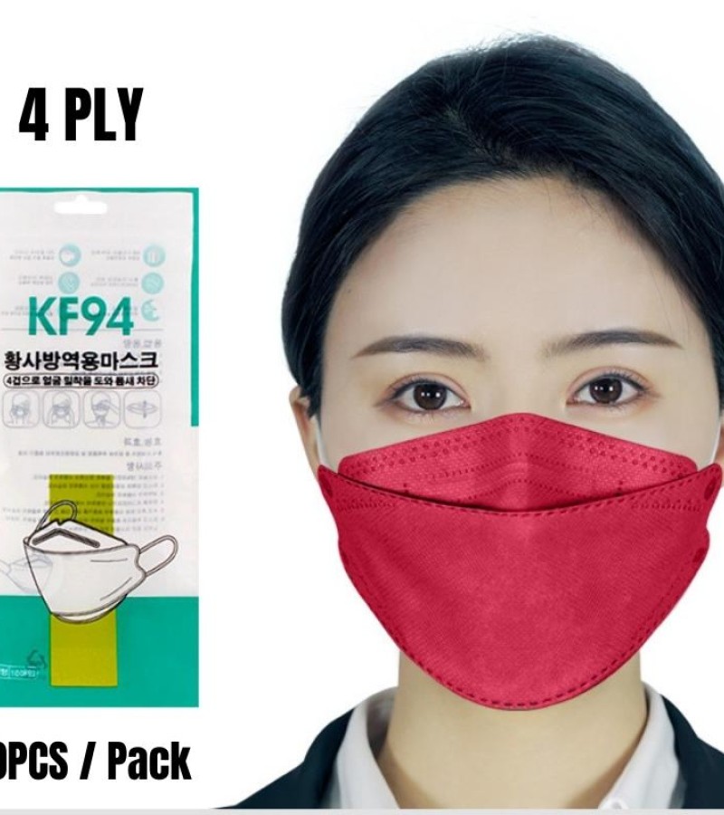 Ready Stock in Singapore Shipped within 24 hours Product Name: KF94 4-PLY PROTECTIVE MASK Premium 3D Design Adult Size: 20.5 *8.5+-5mm Kids Size: 17cm × 7cm (+/- 0.1-0.3cm) 10pcs / Pack Fire & Water Tested ✅BFE>95% 《4-Ply Protective Design》Four layers of protective filtration which includes 2 non-woven outer Layers, 2 melt-blown inner filter, making these KF94 face mask with a light design and ensuring the safety of users. Protect you against Haze, Dust, Carbinol, Pollen, Exhaust and etc. 《3D DESIGN》Face Mask for men, women has unique shaped forming technology, bigger cup design help against particles & breathe smoothly. 《Pleasant Wear》 → It is light-weight and breathable for comfortable wear. #mask #masks #4 PLY #KF94 #KF94 mask #Korea Mask #Medical Mask #Surgical Mask #3D mask #Black Mask #CNY Mask #CNY Masks #CNY Masks Colours #KF 94 Kids Masks #Kids Masks #Children Masks #Disposable Face Masks #Kids 4ply Disposable Mask #BFE95 *Images are for illustration purpose only *The resolution on individual's screen might cause slight color difference **Strictly No Return / Refund / Exchange (Hygiene Reasons)