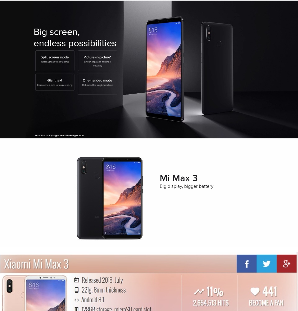 Xiaomi Mi Max 3 // 64GB ROM 4GB RAM / 6.9inches / 5500mAh Battery / AI face unlock / Export set (SG WARRANTY)