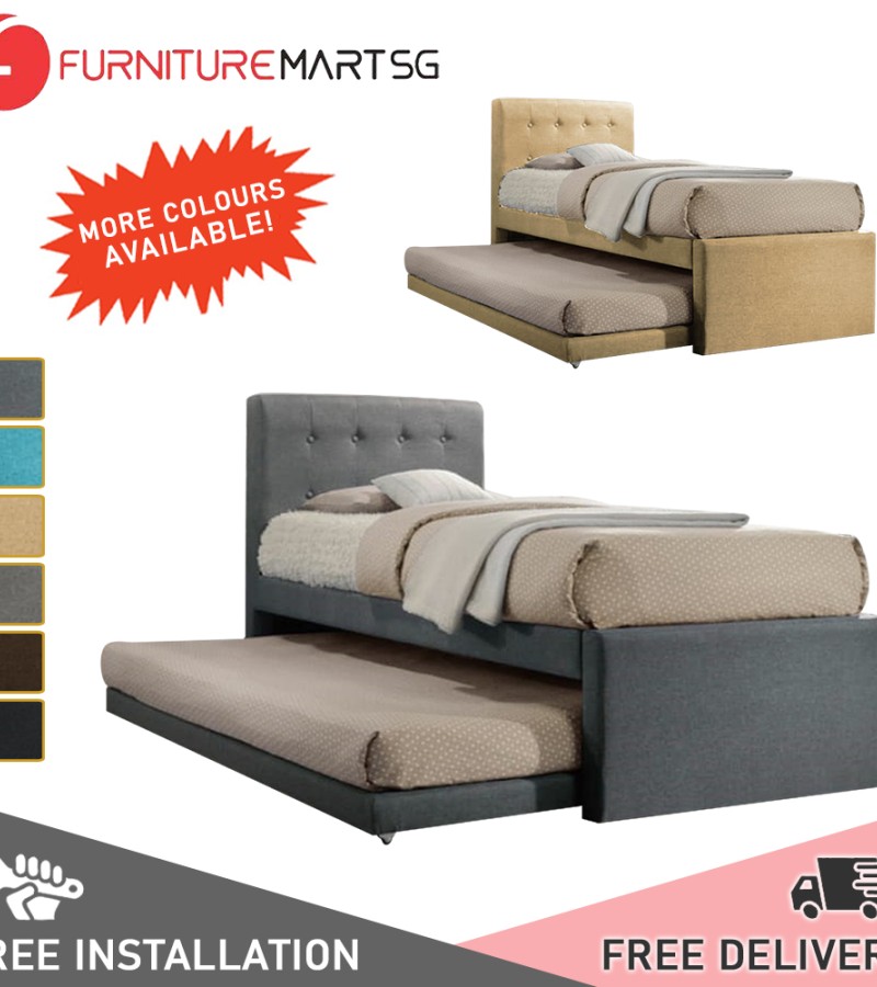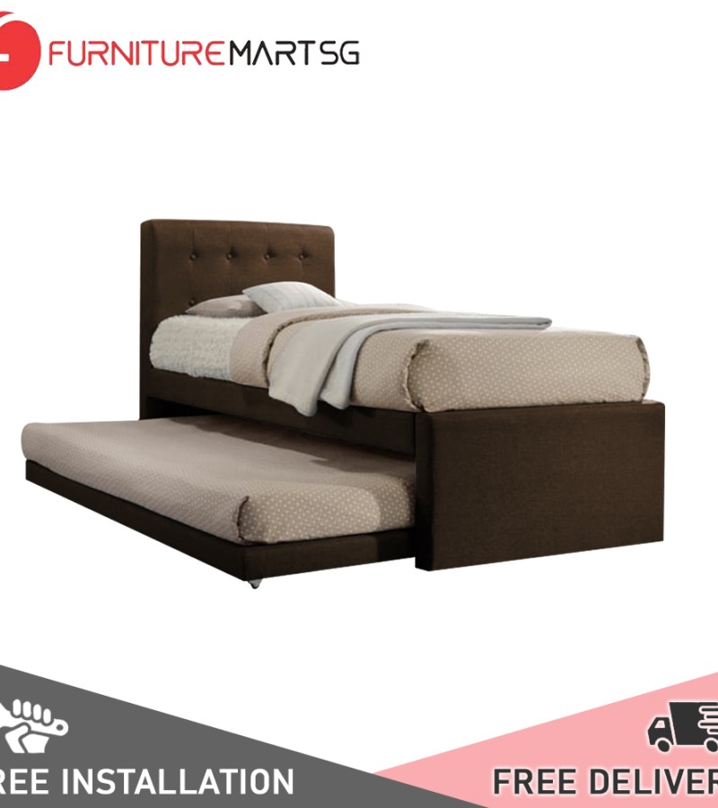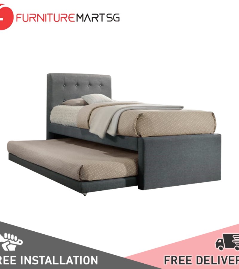 [FurnitureMartSG] Sadie Single and Super Single Pull-Out Type Bed Frame Fabric and Faux Leather in 6 Colour