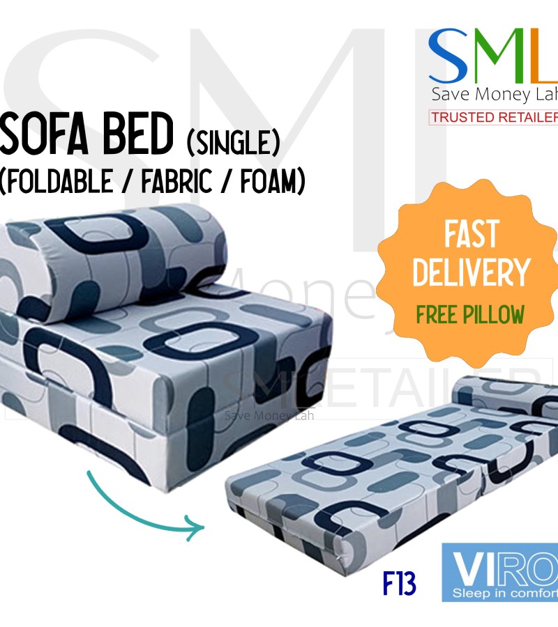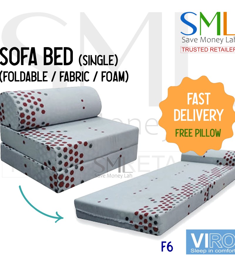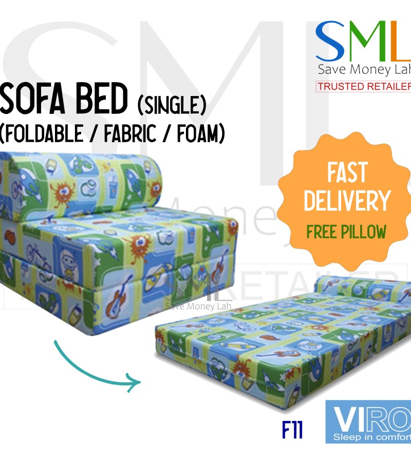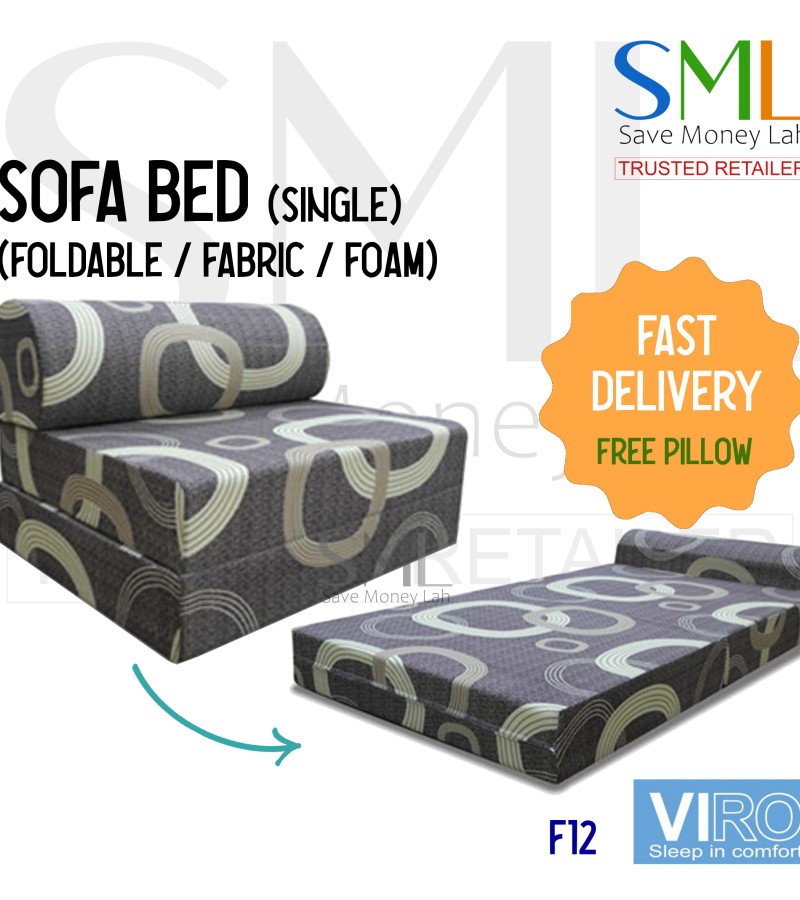 Foldable Fabric Sofa Bed - Foam Type (Single Size) - Medium Firm - 5 designs - Viro