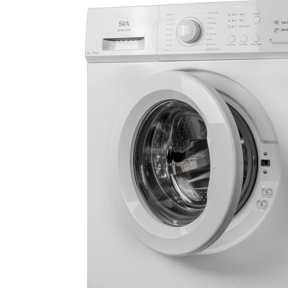 SIA 6kg 1000RPM Washing Machine 9 Preset Programs White - SWM6100W Description
