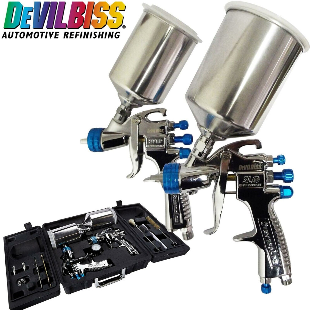 DeVilbiss SLG-650 Starting Line Compliant & HVLP Gravity Fed Spray Guns In Case + Cleaning Kit