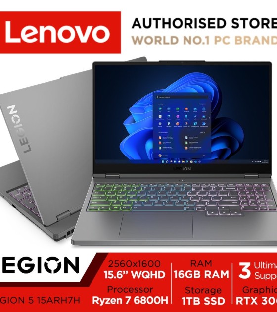 [RTX 3060] Lenovo Legion 5 15ARH7H | 82RD0002SB | 15.6" WQHD (2560x1440) | AMD Ryzen 7 6800H | RTX 3060 | 16GB RAM | 1TB SSD | Win11 home | 3Y Legion Ultimate Support